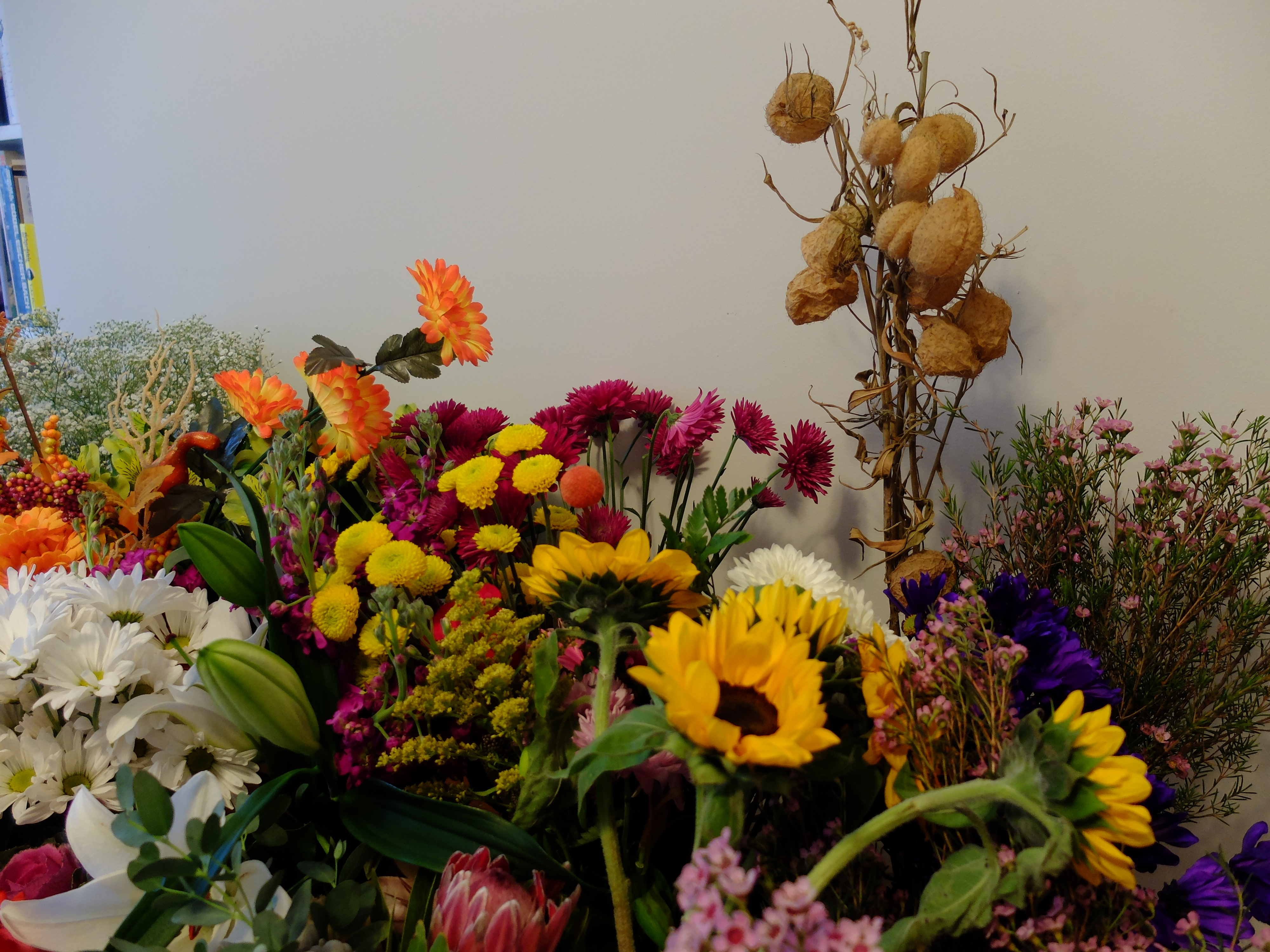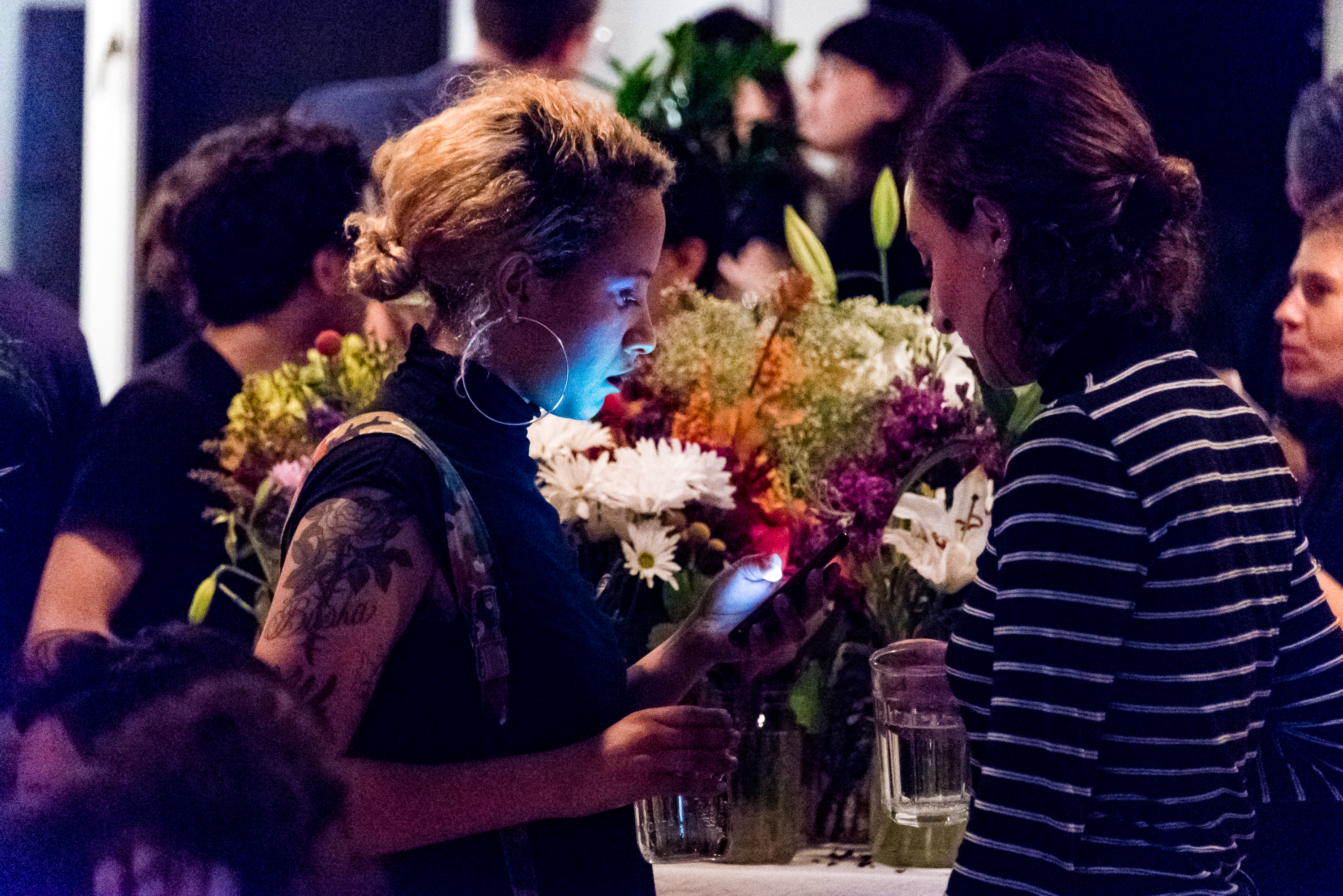 In short, Support System was very much an experiment, and in some ways, a failed one. This was discussed openly in a public conversation between Carolyn and me a few days later, where many of the work’s viewers were also present to share their perspectives. This salon also featured a grand sculpture of all the bouquets Carolyn received, a performance relic that was itself fugitive. Photos of the salon are below.