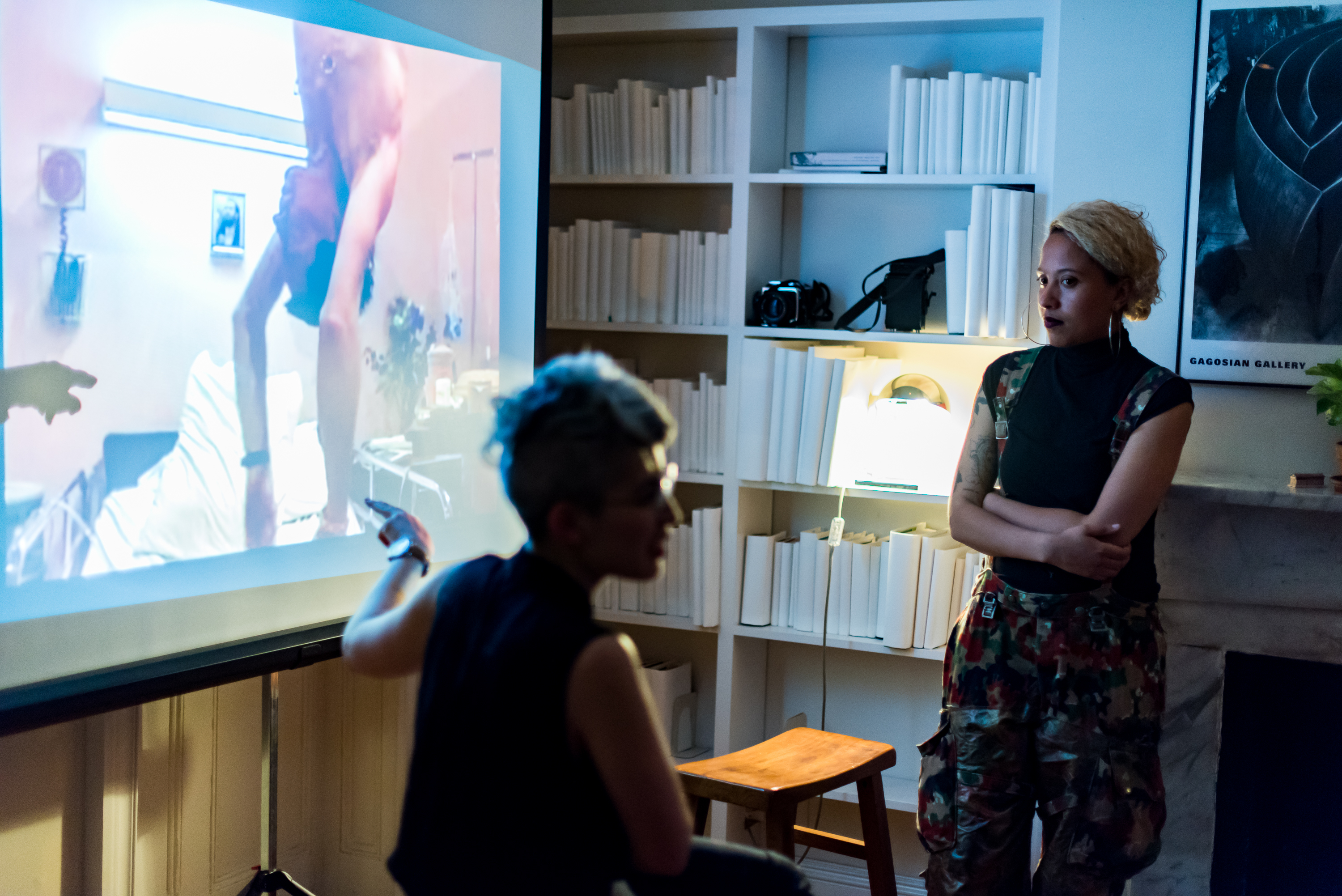 Support System would also allow Carolyn to be social. The forms of sociality most commonly practiced by young people—having a drink at a bar, for example—are unavailable to Carolyn; thus their possibilities for socializing in New York, where private space is often kept very private, are limited. Carolyn envisioned the work as a corrective for that, invoking both the visiting hours practiced by Victorian ladies and the Visiting Hours that artist Bob Flanagan, who lived with and died of cystic fibrosis, first performed at the Santa Monica Museum of Art in 1992. Flanagan is named in the title of Carolyn’s work, as are two other artists who have inspired them, contemporaries Park McArthur and Constantina Zavitsanos, whose ongoing project Care Collective comprises a network of people who assist Park with her nightly routine. Carolyn sees Support System as deeply indebted to these works, but it differs significantly from both of them. One difference is the ambiguous directionality of care in Support System: whom is the piece actually meant to support?